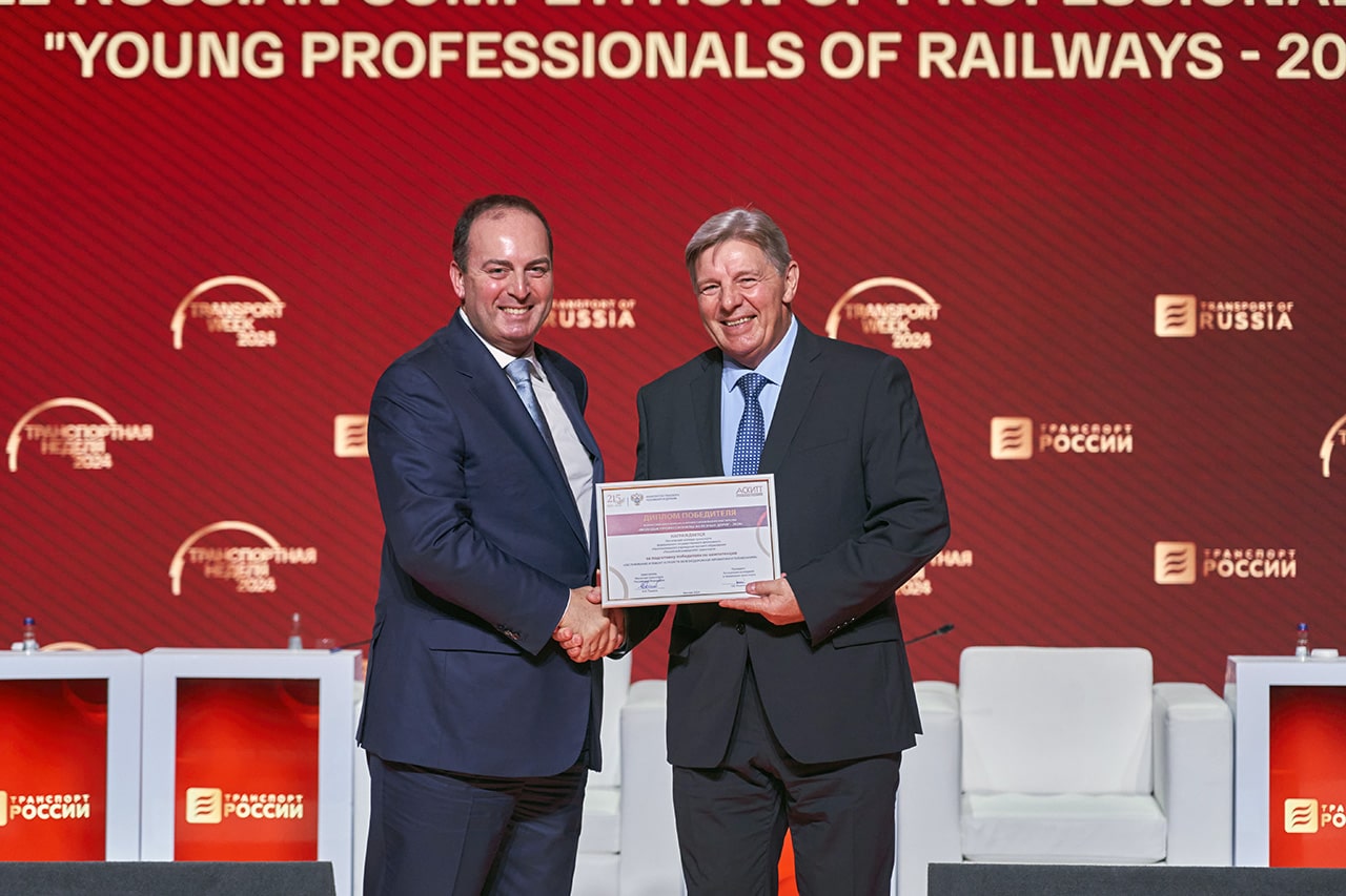 Заместитель Министра транспорта К.А. Пашков вручил Московскому колледжу транспорта Диплом победителя всероссийского конкурса профессионального мастерства «Молодые профессионалы железных дорог»
