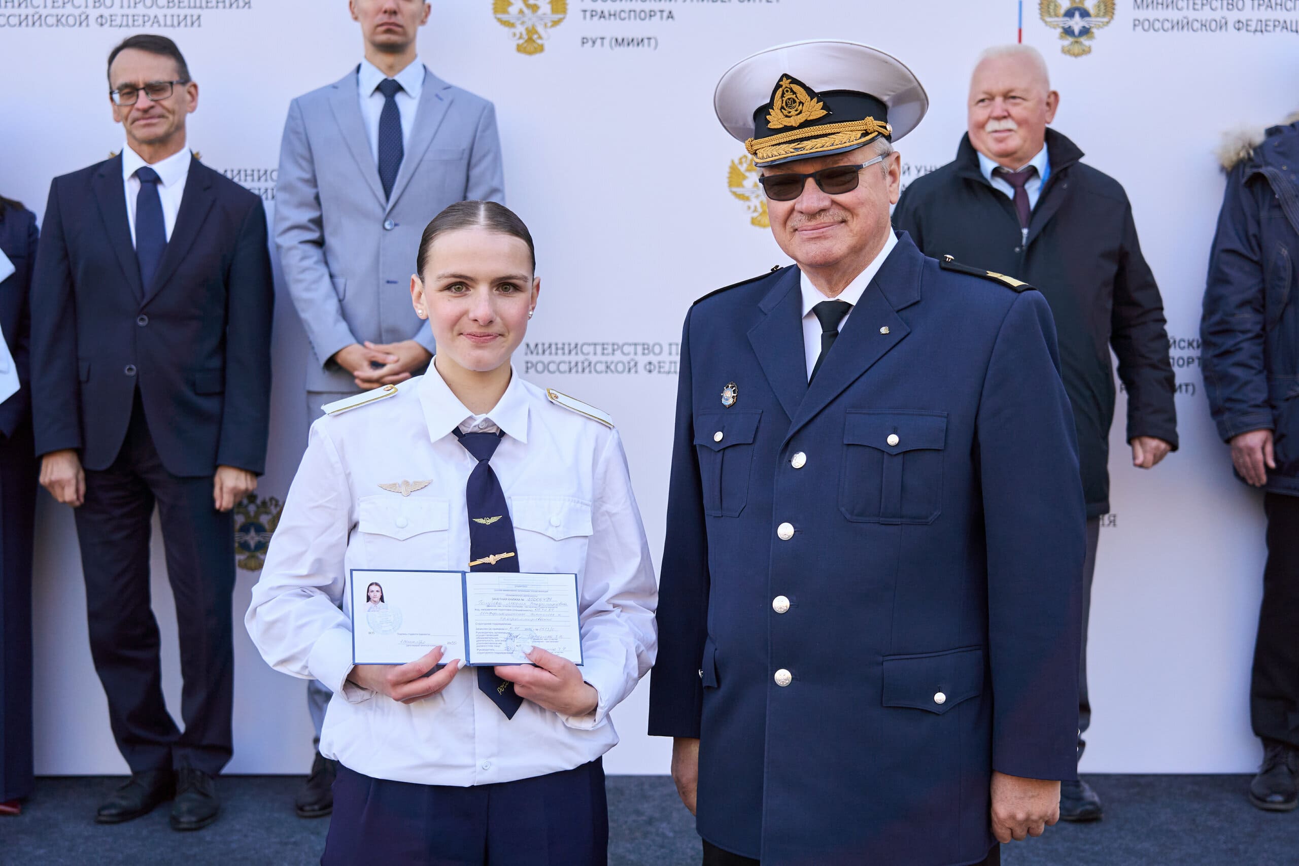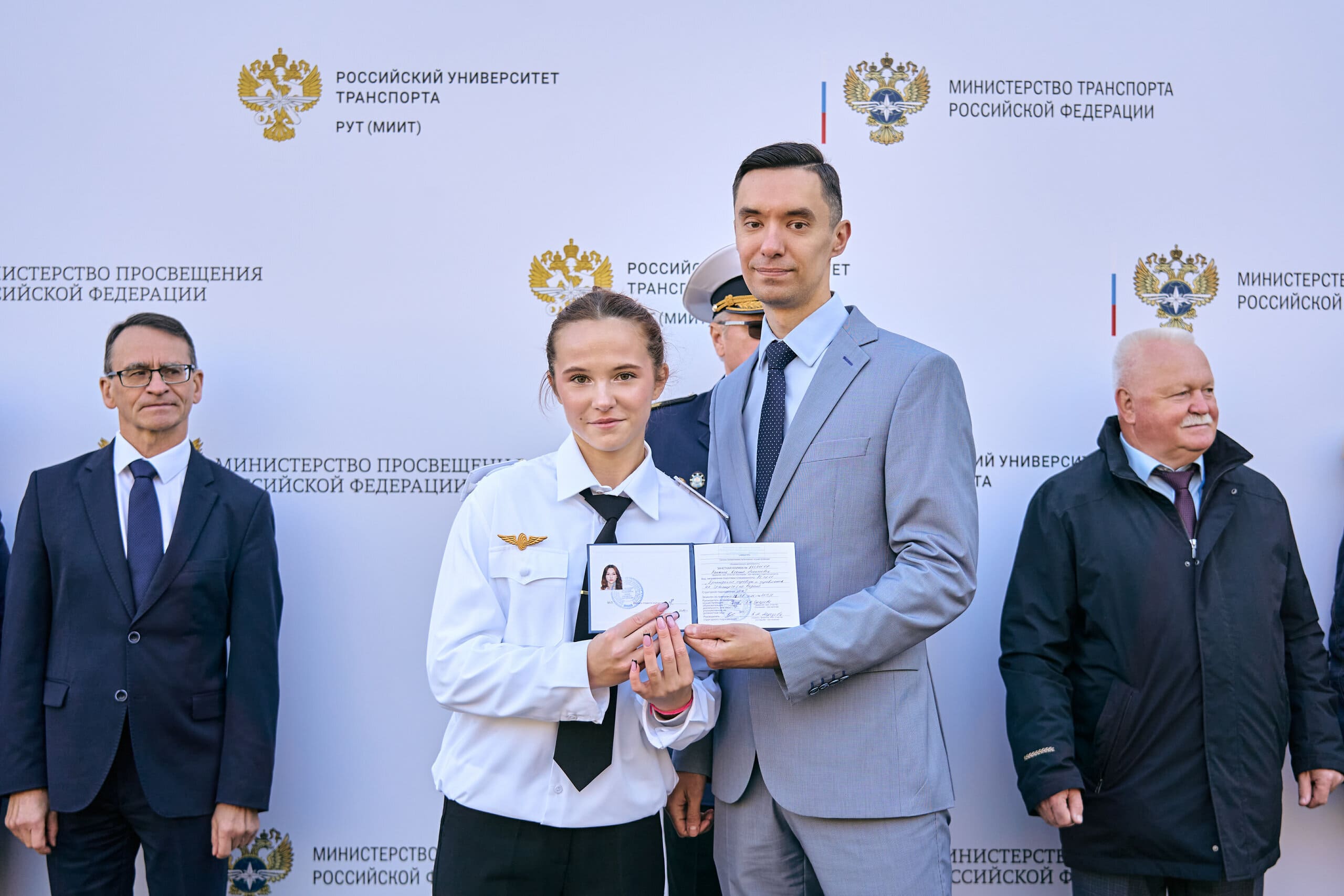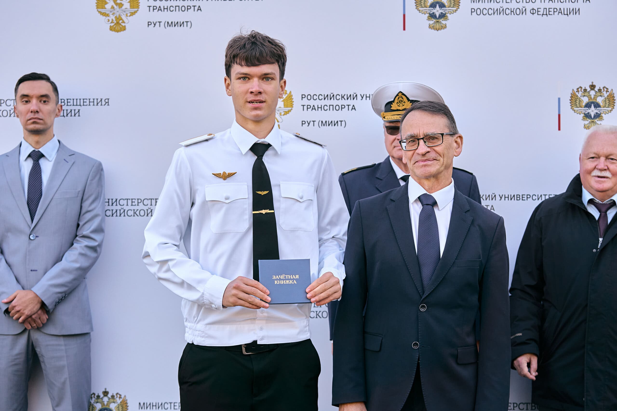 Особое внимание на церемонии открытия было уделено вручению зачётных книжек студентам первого курса. От Московского колледжа транспорта честь получить студенческий символ доверия и новых знаний выпала: Аленину Глебу (группа ОД-153), Ханжиной Ксении (группа ОП-151) и Голубевой Марии (группа ИП-151).