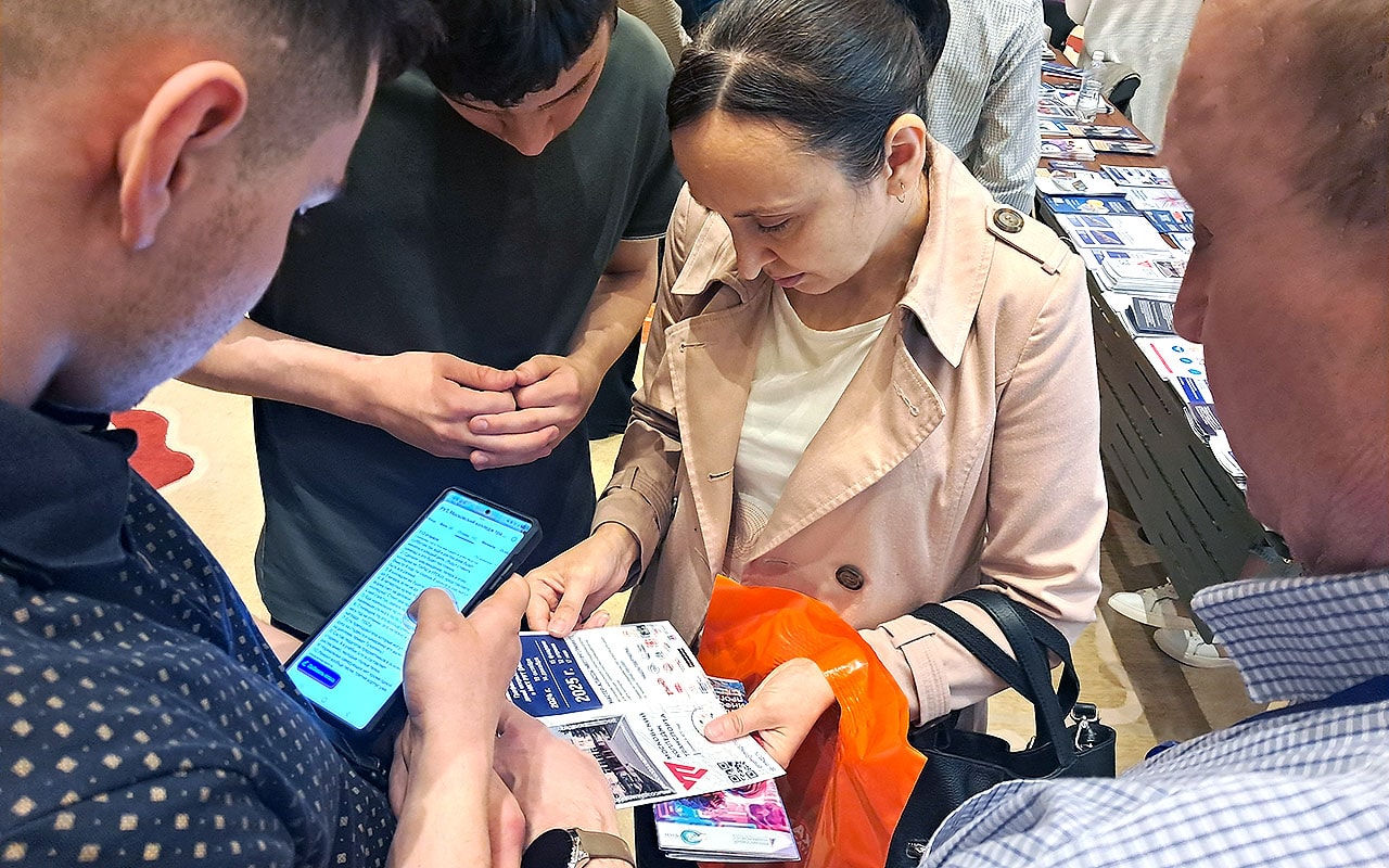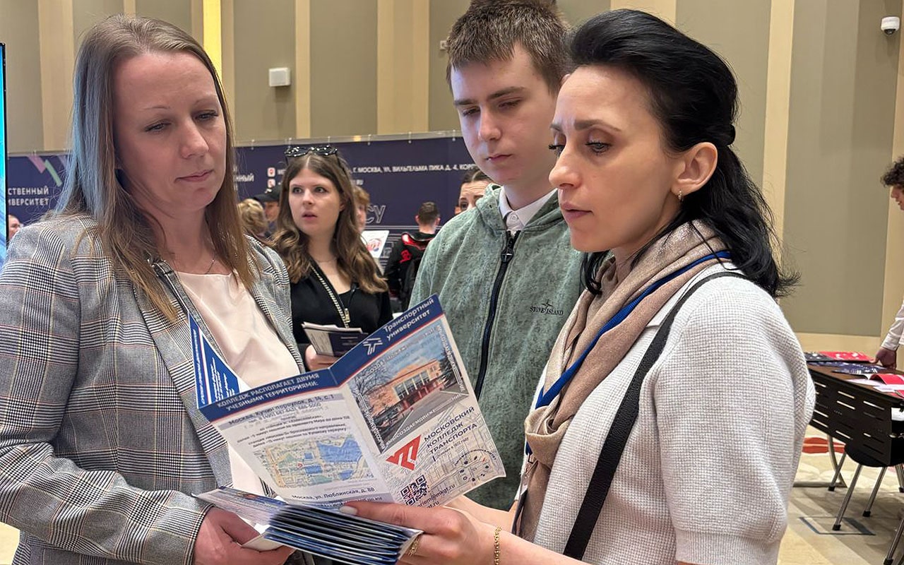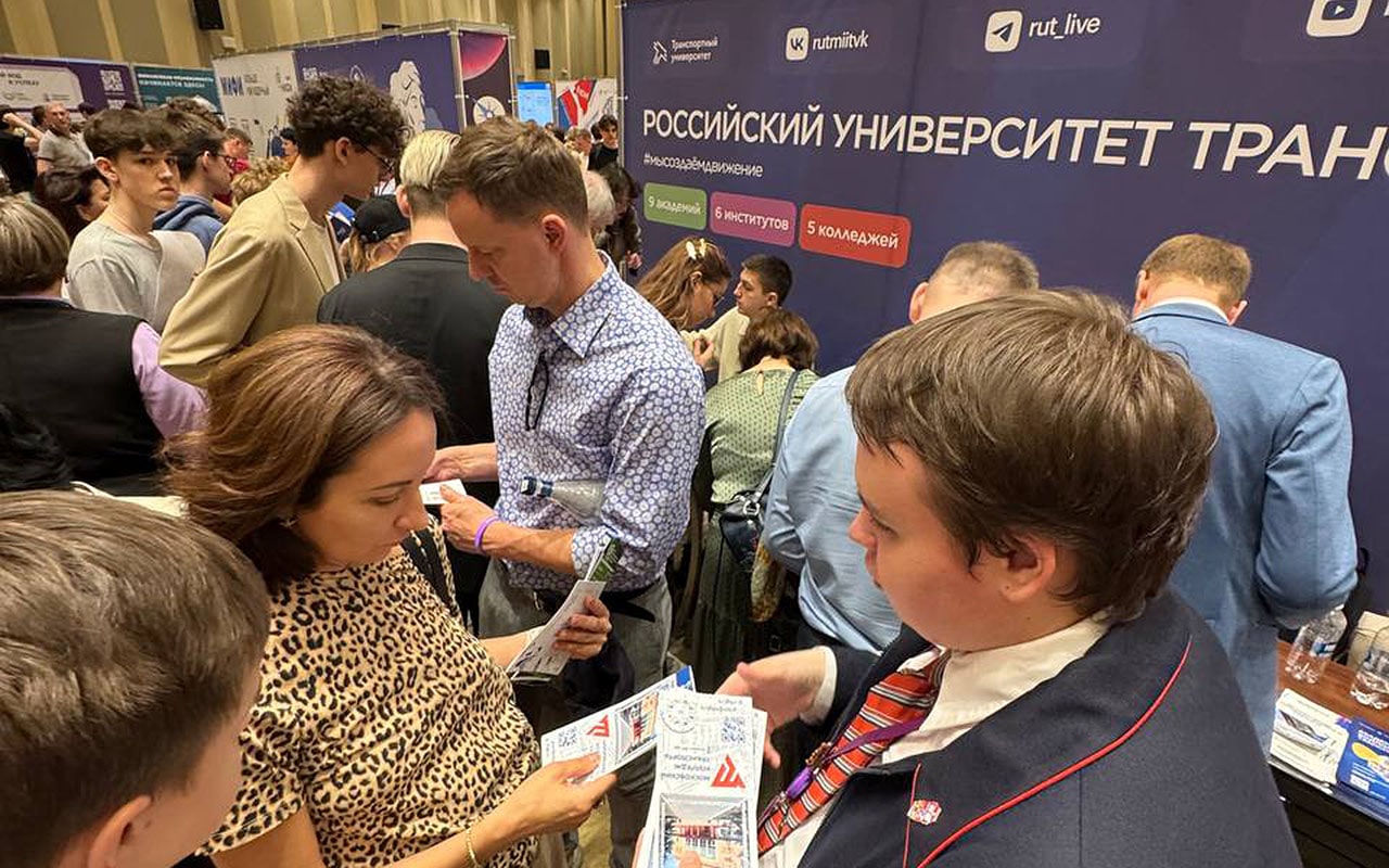На стенде колледжа в составе экспозиции РУТ (МИИТ) абитуриенты и их родители познакомились с основными направлениями обучения в МКТ и порядком поступления в 2025 году.